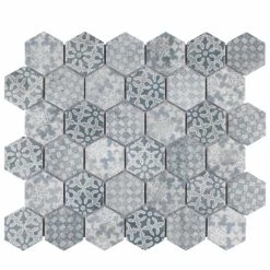 Brand new π Merola Tile Medley 2″ Hex Slate Blue 11.13″ X 12.63″ Porcelain Mosaic Tile π
