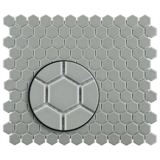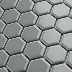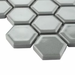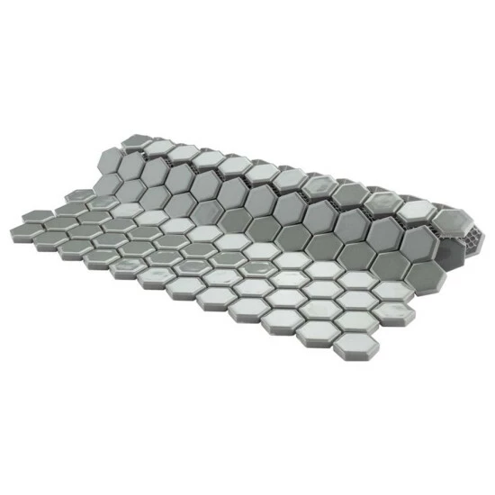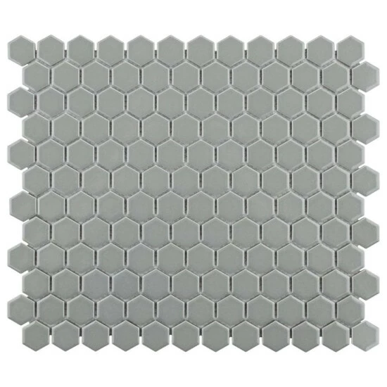 Transform your space into a tribute to retro design with our 10.25 x 11.75-Inch Renova Hex Glossy Light Grey Porcelain Mosaic Floor and Wall Tile. As a modern deviation from the classic mosaic, this fresh option is a throwback to traditional retro design with a contemporary feel. Glossy light grey hexagons are precisely arranged on an interlocking mesh to create a seamless installation. This minimalistic geometric porcelain mosaic is unique yet simplistic enough to integrate into any design, ranging from traditional style renovations to modern home projects. Its impervious, frost resistant and durable features make this an ideal tile for both residential indoor and outdoor use, including backsplashes, bathrooms, kitchens and patios.Tile is the better choice for your space. This tile is made from natural ingredients, making it a healthy choice as it is free from allergens, VOCs, formaldehyde and PVC.