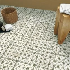 The 17.625×17.625-inch Royals Cathedral Sage Ceramic Floor and Wall Tile is a decorative piece with a watercolor inspired appearance. The defining feature of this encaustic-look tile is the unique, low-sheen glaze in beige tones with faded sage intersecting lines that blend to create various geometric shapes. Slight variation across the surface mimics a hand painted appearance. Designed by interior architect and furniture designer Francisco Segarra, this tile is a true reflection of vintage industrial design. There are 10 different variations available that are randomly scattered throughout each case. With a high durability rating, this tile is an ideal choice for both commercial and residential indoor installations including, kitchens, bathrooms and entryways. Tile is the better choice for your space. This tile is made from natural ingredients, making it a healthy choice as it is free from allergens, VOCs, formaldehyde and PVC.