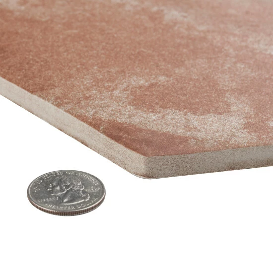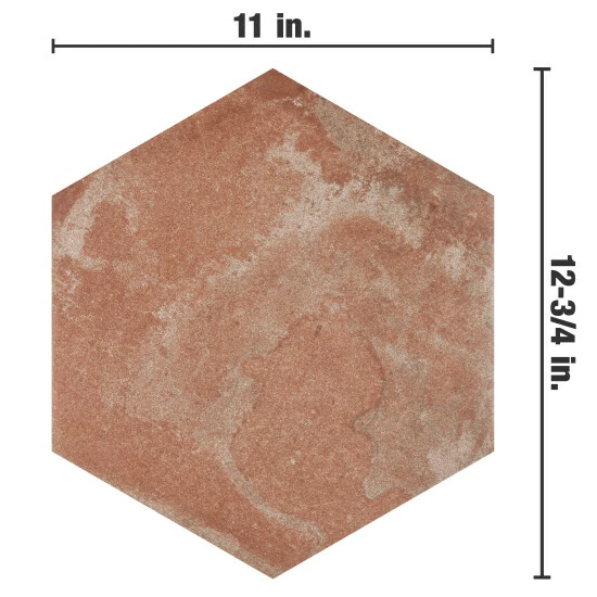 Bring a colonial feel to your present-day style home with our Americana Boston North End Hex 11 in. x 12-3/4 in. Porcelain Floor and Wall Tile. With slight variation along the edges, this extruded porcelain tile offers a one-of-a-kind look that can only be achieved through a partially handmade process. Varying tones of ochre and sepia set the backdrop for this stone-look hexagon format tile, ensuring no two looks will ever be the same. This tile offers endless design possibilities and is a perfect choice on its own or coordinated with other products in the Americana series. Its impervious and frost resistant features make this an ideal choice for indoor and outdoor installations including, kitchens, bathrooms and patios. Tile is the better choice for your space. This tile is made from natural ingredients, making it a healthy choice as it is free from allergens, VOCs, formaldehyde and PVC.