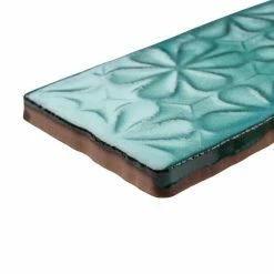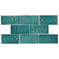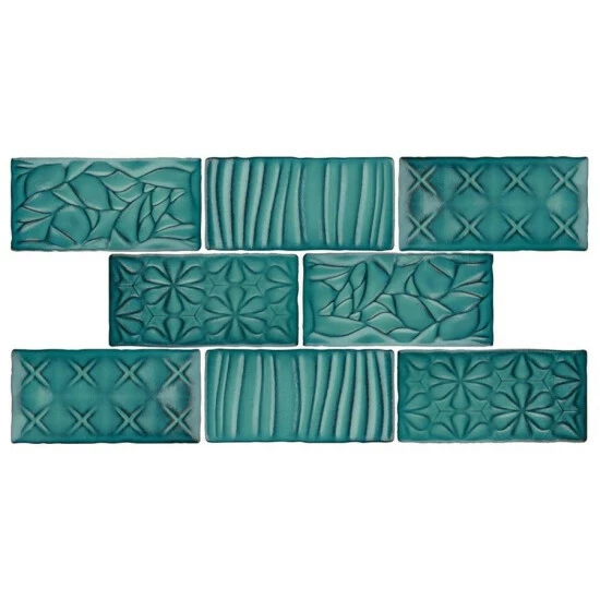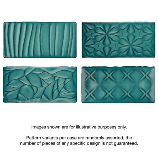 Bring unique vintage accents to your home with the Antic Sensations Lava Verde 3 in. x 6 in. Ceramic Wall Subway Tile. These embossed floral subway tiles feature uneven edges for a handmade look. There are up to four varieties of unique contemporary geometric patterns randomly assorted within the pack for endless design possibilities. The unique pastel coloring, which features shades of deep seafoam green and gradually darkens to navy and brown around the edges, creates a rustic look. These glossy tiles feature a bisque finish that shows the red ceramic on the raised pattern. The reactive glaze on this tile makes every piece unique, so you will never have two that are exactly the same. This reactive glazing technique may cause high variation between dye lots. Please expect variation in color between orders and from what is pictured. Use these subway tiles as an accent with many of our other products, including those in the Antic collection, to complete an elegant look.