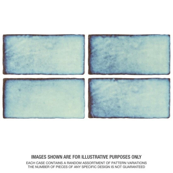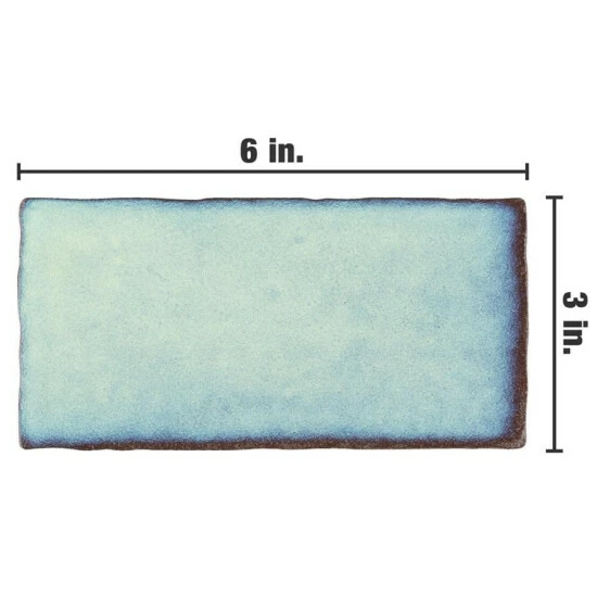 Bring unique vintage accents to your home with the Antic Special Agua Marina 3 in. x 6 in. Ceramic Wall Subway Tile. These smooth subway tiles feature uneven edges for a handmade look. The unique coloring, which features different shades of vibrant mint and gradually darkens to teal, navy and then brown around the edges, creates a rustic look. These glossy tiles feature slight variation in surface for added depth. The reactive glaze on this tile makes every piece unique, so you will never have two that are exactly the same. This reactive glazing technique may cause high variation between dye lots. Please expect variation in color between orders and from what is pictured. Use these subway tiles with many of our other products, including those in the Antic collection, to complete an elegant look.