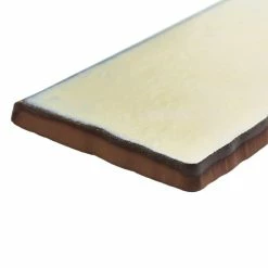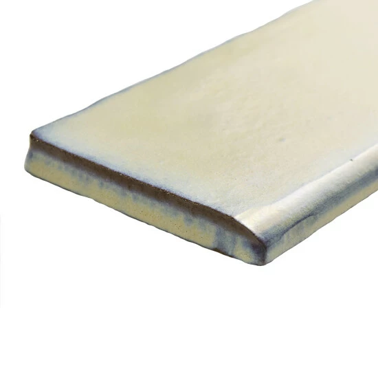 Bring unique vintage accents to your home with the Antic Special Pergamon 3″ x 6″ Ceramic Bullnose Wall Trim Subway Tile. This satin trim piece features uneven edges for a handmade look. The unique coloring, which features shades of light blue and cream which gradually darkens to periwinkle and brown around the edges, creates a rustic look. Each tile features slight variation in tone and surface texture. The reactive glaze on this tile makes every piece unique, so you will never have two that are exactly the same. This reactive glazing technique may cause high variation between dye lots. Please expect variation in color between orders and from what is pictured. Use these trim tiles with many of our other products, including those in the Antic collection to complete an elegant look.