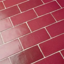 Bring a unique vintage look to your home with the Antic Special Red Moon 3 in. x 6 in. Ceramic Wall Subway Tile. These smooth subway tiles feature uneven edges for a handmade look. The unique coloring, which features variations of vibrant crimson red with brown around the edges, creates a rustic look. These glossy tiles feature slight variation in surface for added depth. The reactive glaze on this tile makes every piece unique, so you will never have two that are exactly the same. This reactive glazing technique may cause high variation between dye lots. Please expect variation in color between orders and from what is pictured. Use these subway tiles with many of our other products, including those in the Antic collection, to complete an elegant look.