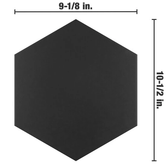 Lending a bold appearance, our Apini Hex Matte Black 9 in. x 10-1/2 in. Porcelain Floor and Wall Tile instantly elevates spaces through a refreshing dose of geometric design. The black glaze is uniformly applied to create a striking matte surface that offers eye-catching beauty. Given the versatility of its format, this hexagon tile is unique yet simplistic enough to integrate into any design, ranging from traditional style renovations to modern home projects. Its impervious, frost resistant and durable features make this an ideal tile for residential indoor and outdoor use, including kitchen backsplashes, bathroom showers, and fireplace facades. This tile is a perfect choice on its own or paired with other products in the Apini Collection. Tile is the better choice for your space. This tile is made from natural ingredients, making it a healthy choice as it is free from allergens, VOCs, formaldehyde and PVC.