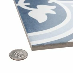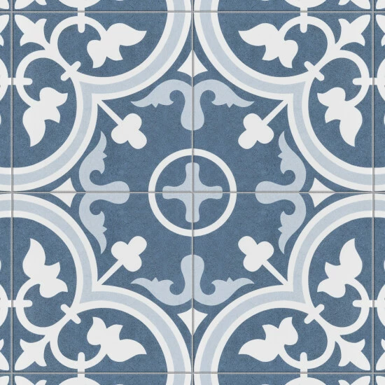 As the original encaustic-look porcelain tile that started the patterned tile trend, our Arte Artic 9-3/4 in. x 9-3/4 in. Porcelain Floor and Wall Tile draws inspiration from artisan cement tiles. Crafted in Spain, this porcelain tile features a large floral old-world pattern in snow white and light blue that frames dueling arcs in the center, offering subtle contrast and dimension to the decoration. Set on the highest-quality denim blue base glaze, the contrasting design features a weathered, speckled look, replicating the beauty of its cement muse. The floral, geometric pattern blends into virtually any design theme, making this an exceptional product for modern installations and historic renovations. Its impervious, frost resistant, and durable features make it an ideal choice for both commercial and residential indoor and outdoor installations including, kitchens, bathrooms, backsplashes, showers, hallways, entryways, patios, and fireplace facades. This tile is a perfect choice on its own or coordinated with other products in the Arte series. Tile is the better choice for your space. This tile is made from natural ingredients, making it a healthy choice as it is free from allergens, VOCs, formaldehyde, and PVC.