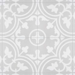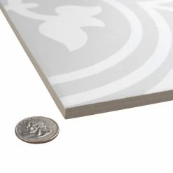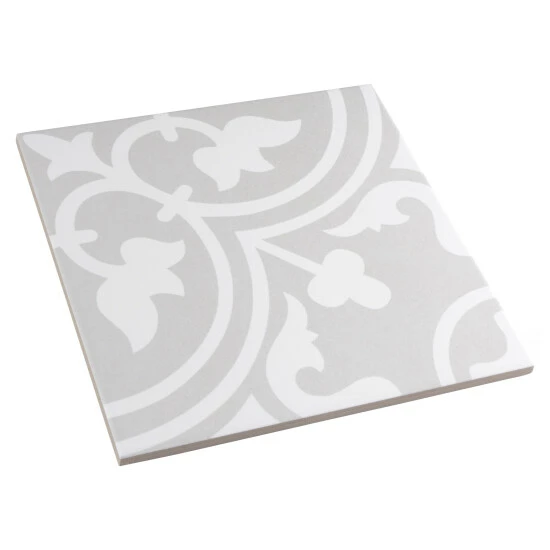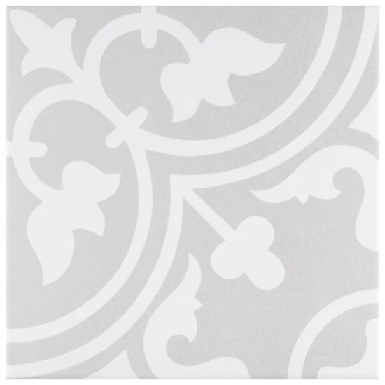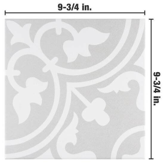 As the original encaustic-look porcelain tile that started the patterned tile trend, our Arte Soft Grey 9-3/4 in. x 9-3/4 in. Porcelain Floor and Wall Tile draws inspiration from artisan cement tiles. Crafted in Spain, this porcelain tile features a large floral old-world pattern in off-white that frames dueling arcs in the center, offering subtle contrast and dimension to the decoration. Set on the highest-quality light grey base glaze, the contrasting design features a weathered, speckled look, replicating the beauty of its cement muse. The floral, geometric pattern blends into virtually any design theme, making this an exceptional product for modern installations and historic renovations. Its impervious, frost resistant, and durable features make it an ideal choice for both commercial and residential indoor and outdoor installations including, kitchens, bathrooms, backsplashes, showers, hallways, entryways, patios, and fireplace facades. This tile is a perfect choice on its own or coordinated with other products in the Arte series. Tile is the better choice for your space. This tile is made from natural ingredients, making it a healthy choice as it is free from allergens, VOCs, formaldehyde, and PVC.