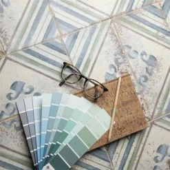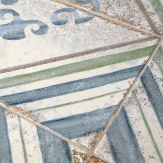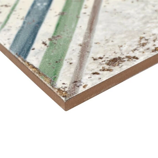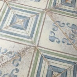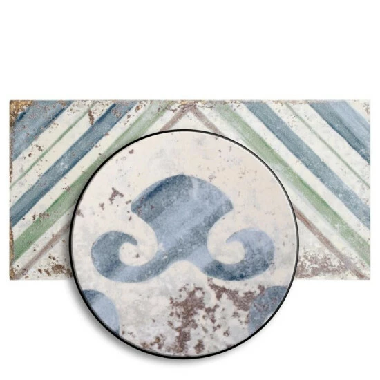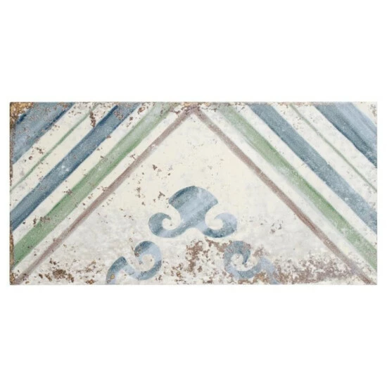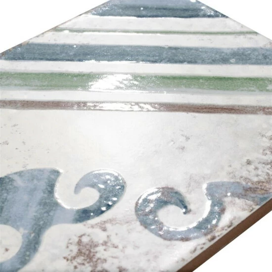Our Atelie Apollini 5-7/8 in. x 11-7/8 in. Ceramic Wall Tile is a decorative piece with a watercolor inspired appearance. This tile features a union of symmetrical lines and floral geometric patterns in faded shades of sage, tawny, steel blue, and grey that when installed, converge in the center and create diamond shaped patterns in varied sizes. Set on a mixed finish and faded white glazed surface, this tile brings a rustic charm to your interior walls with imitations of scuffs and spots that are the marks of well-loved, worn, century-old tile. These rustic scuffs and spots convince that this tile is truly aged. Available in multiple print variations that are randomly scattered throughout each case. Tile is the better choice for your space. This tile is made from natural ingredients, making it a healthy choice as it is free from allergens, VOCs, formaldehyde and PVC.