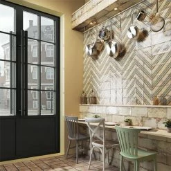 Our Atelie Arquitect White 5-7/8 in. x 11-7/8 in. Ceramic Wall Tile is a decorative piece with a watercolor inspired appearance. This tile features a union of symmetrical lines in faded shades of sage, tawny, steel blue, and grey that can be installed to create various geometric designs. Set on a mixed finish and faded white glazed surface, this tile brings a rustic charm to your interior walls with imitations of scuffs and spots that are the marks of well-loved, worn, century-old tile. These rustic scuffs and spots convince that this tile is truly aged. Available in multiple print variations that are randomly scattered throughout each case. Tile is the better choice for your space. This tile is made from natural ingredients, making it a healthy choice as it is free from allergens, VOCs, formaldehyde and PVC.