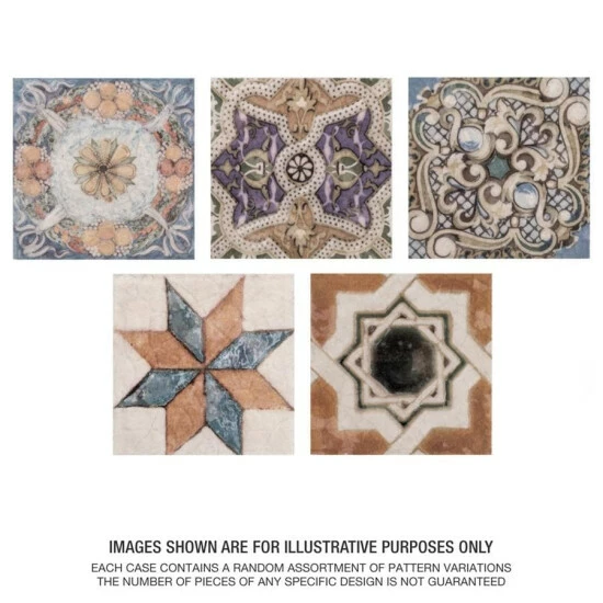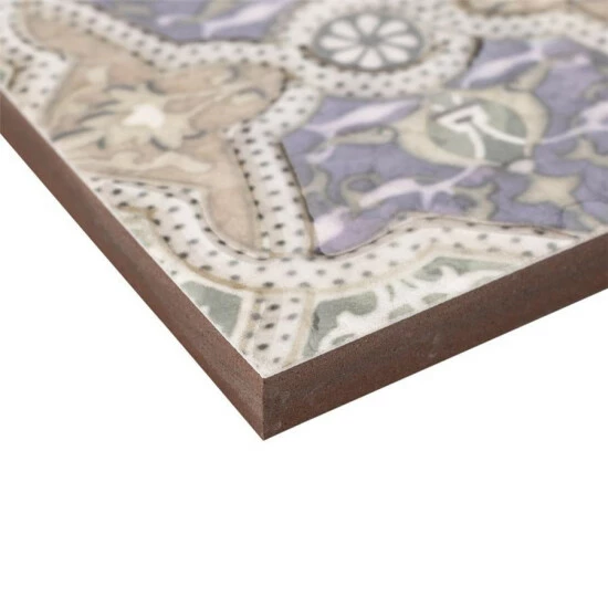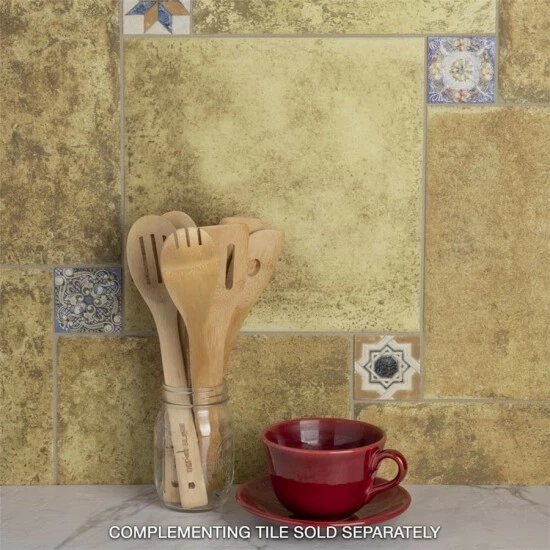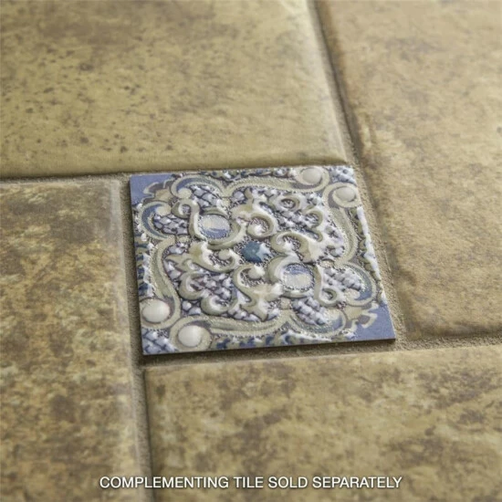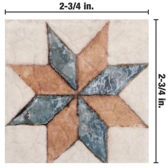 The Avila Arenal Taco 2-3/4 in. x 2-3/4 in. Ceramic Floor and Wall Trim Tile has a classic, rustic look to it that complements many different decors. Composed of ceramic, these tiles have a unique, third-fired glaze-textured surface with vibrant designs on the face. This tile airs well with other products in the Avila series to create a complete look. This tile is available in five print variations that are randomly scattered throughout each case, ensuring a truly unique installation. Tile is the better choice for your space. This tile is made from natural ingredients, making it a healthy choice as it is free from allergens, VOCs, formaldehyde and PVC