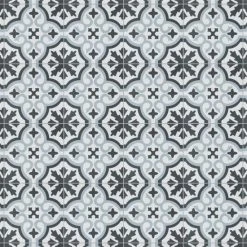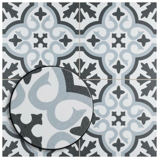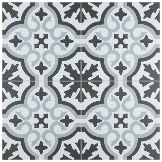 Capturing the artisanal look of cement tile, our Berkeley Essence Sky 17-3/4 in. x 17-3/4 in. Porcelain Floor and Wall Tile offers an encaustic, old-world design that can blend into any dΓ©cor. With a recognizable European-inspired design, the simplistic arcs frame the snowflake inspired patterns that create continuity throughout the installation. Set on an eggshell base glaze, the light and dark blue designs offer the ability to be used in modern and rustic settings. Β Save time and labor spent arranging smaller square tiles and instead install these durable porcelain slabs, which have four approximately 8-3/4 in. squares with scored grout lines. The scored grout lines can be grouted with the color of your choice to further customize your installation. Its impervious and frost resistant features make this product an ideal choice for indoor and outdoor installations including, kitchens, bathrooms, entryways and patios. Tile is the better choice for your space. This tile is made from natural ingredients, making it a healthy choice as it is free from allergens, VOCs, formaldehyde and PVC.