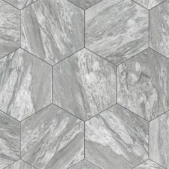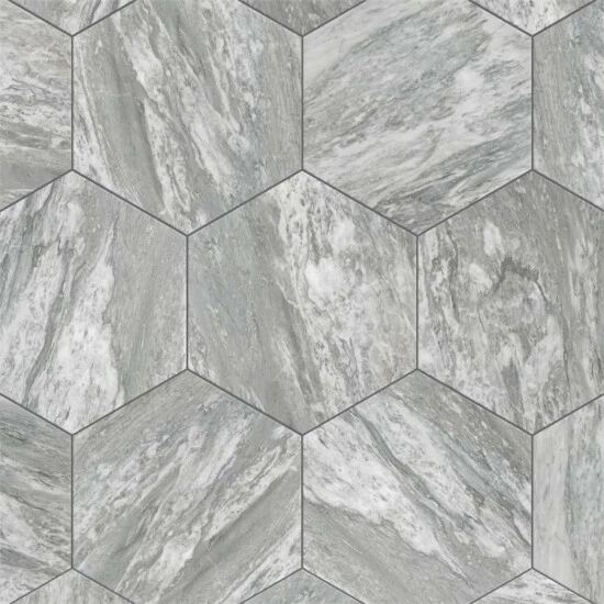 Emulating the timeless beauty of marble stone, our BioTech Bardgilio Hex 11″ x 13″ Porcelain Floor and Wall Tile combines cutting-edge antimicrobial technology with the versatility of durable, healthy, and easy to maintain porcelain tile. This matte hexagon tile features grey veining and striations set on a white base glaze, which utilizes antimicrobial compounds such as zinc oxide and silver oxide to inhibit the ability for bacteria, mold, and fungi to replicate. This technology results in a 99% reduction of harmful microbes compared to typical surfaces. Its impervious, frost-proof, and durable features make it an ideal choice for residential or commercial indoor and outdoor installations, including kitchens, bathrooms, backsplashes, showers, entryways, and patios. The Bardiglio Hex with BioTech glaze is ideal for any space which requires additional levels of safety and hygiene, and like all porcelain tile, it is made from natural ingredients and free of all allergens, VOCS, formaldehyde and PVC.