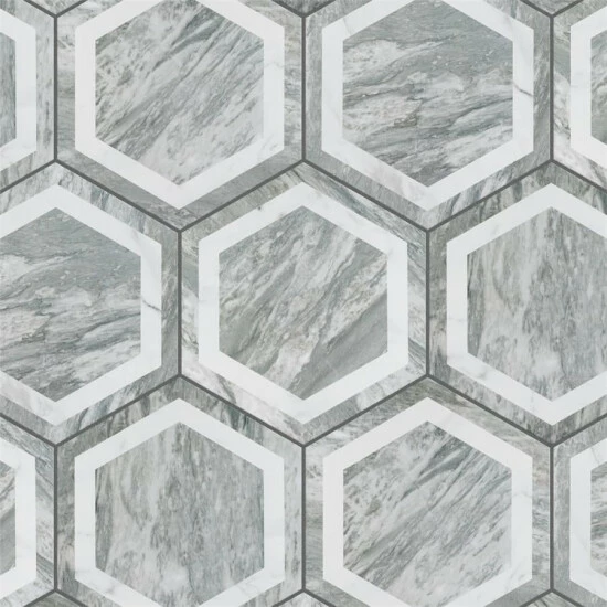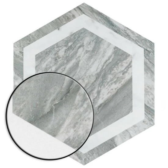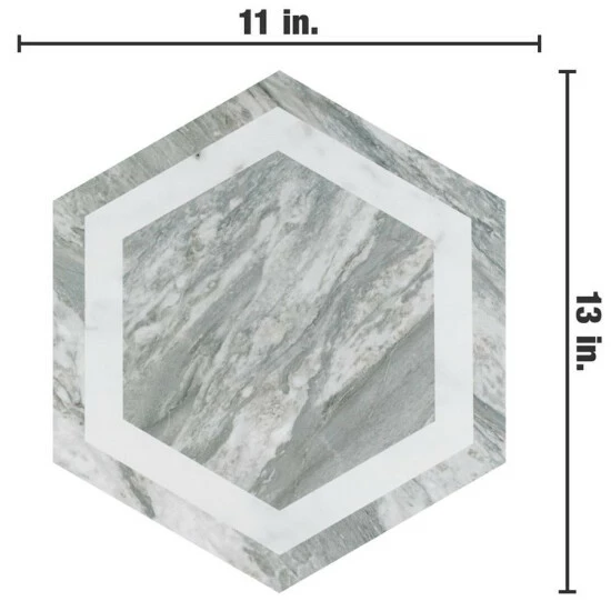 Emulating the timeless beauty of marble stone, our BioTech Bardiglio Hex Deco 11″ x 13″ Porcelain Floor and Wall Tile combines cutting-edge antimicrobial technology with the versatility of durable, healthy, and easy to maintain porcelain tile. This matte hexagon tile features alternating framing patterns with grey veining and striations set on a white base glaze, which utilizes antimicrobial compounds such as zinc oxide and silver oxide to inhibit the ability for bacteria, mold, and fungi to replicate. This technology results in a 99% reduction of harmful microbes compared to typical surfaces. Its impervious, frost-proof, and durable features make it an ideal choice for residential or commercial indoor and outdoor installations, including kitchens, bathrooms, backsplashes, showers, entryways, and patios. The Bardiglio Hex with BioTech glaze is ideal for any space which requires additional levels of safety and hygiene, and like all porcelain tile, it is made from natural ingredients and free of all allergens, VOCS, formaldehyde and PVC.