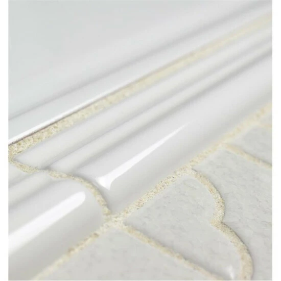 Bring a touch of relaxing Zen to your space with the Blanco Brillo Zen 1-1/4″ x 7-7/8″ Ceramic Moldura Wall Trim Tile. This modern trim piece has a rounded, camelback surface which adds dimension to any wall. With a glossy, crisp white glaze, this tile is great for separating two different tiles. With an adaptable design that works well with different decors, this trim can blend into any installation. This wall trim is an excellent choice for backsplashes, showers, and accent walls.