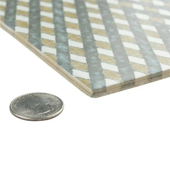 Mesmerizing geometric patterns and unique colors blend together to create our Boheme Grid 7-3/4 in. x 7-3/4 in. Ceramic Floor and Wall Tile. This ceramic tile transforms any space into a work of art through linear patterns in varying shades of khaki and slate blue set on an off-white base glaze. Composed of rich detail and a smooth surface texture, this floor and wall tile features stunningly realistic fabric-look designs for additional visual dimension. Its highly durable and frost-resistant features make this an ideal choice for indoor and outdoor commercial and residential installations including kitchens, bathrooms, entryways, and patios. Tile is the better choice for your space. This tile is made from natural ingredients, making it a healthy choice as it is free from allergens, VOCs, formaldehyde and PVC.