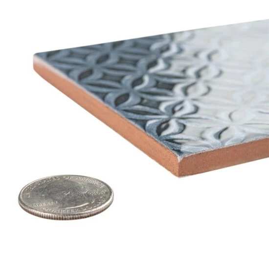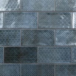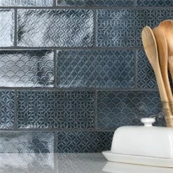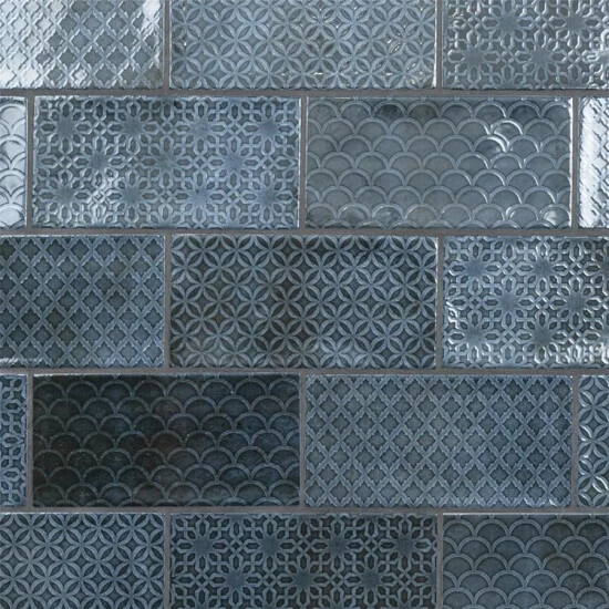 Inspired by the colors and patterns of the historical London district, our Camden Decor Azurro 4 in. x 8 in. Ceramic Subway Wall Tile radiates simplistic English elegance. This enlarged subway tile features four varying old-world designs in denim blue tones with a smooth surface. With a glossy undulated surface, this geometric patterned tile adds timeless appeal and sophisticated depth to any space. Its glazed feature makes this tile an ideal choice for indoor wall installations including, kitchen backsplashes bathroom showers, and fireplace facades. This tile is a perfect choice on its own or paired with other products in the Camden Decor Collection. Tile is the better choice for your space. This tile is made from natural ingredients, making it a healthy choice as it is free from allergens, VOCs, formaldehyde and PVC.