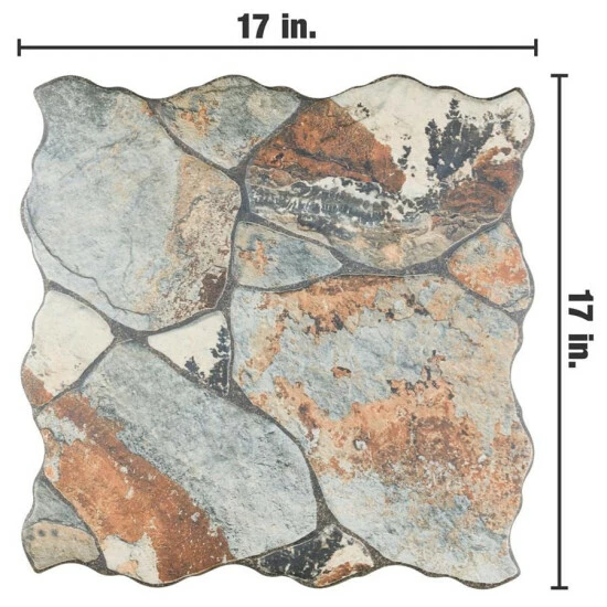 Capturing the rustic appearance of natural stone in a durable porcelain material, our Canet Oxido 17″ x 17″ Porcelain Floor and Wall Tile brings the irreplaceable beauty of nature into any living space. Comprised of abstract stone-look shapes in varying shades of beige, brown, orange, and grey, this tile creates a unique sporadic design with a textured surface. This floor and wall tile draws heavily from the natural appeal of stone with imitation scuffs and spots that suits a variety of looks, including vintage, natural and modern. Its impervious, frost-proof, and durable features make it an ideal choice for residential or commercial indoor and outdoor installations, including kitchens, bathrooms, backsplashes, showers, entryways, and patios. Tile is the better choice for your space. This tile is made from natural ingredients, making it a healthy choice as it is free from allergens, VOCs, formaldehyde, and PVC.br>