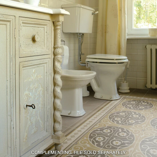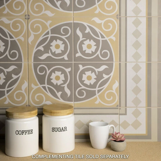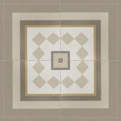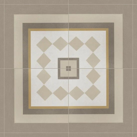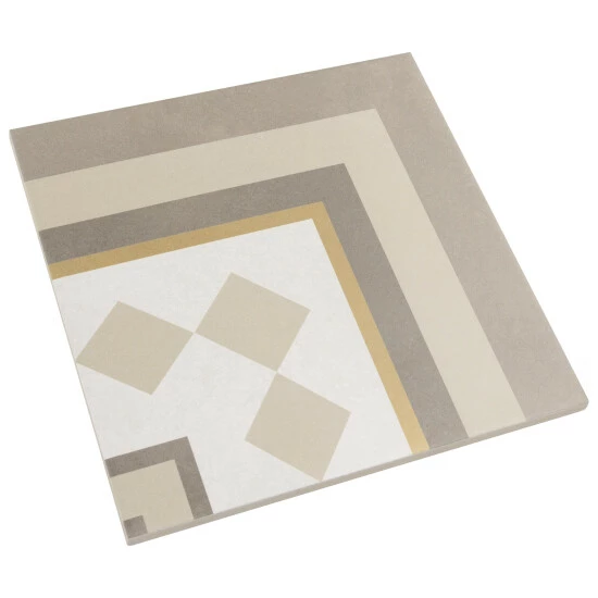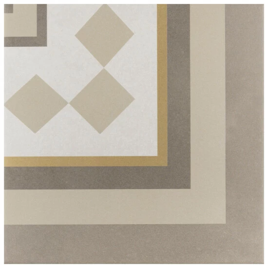 Achieve patterned elegance with our Caprice Loire 7-7/8 in. x 7-7/8 in. Porcelain Floor and Wall Corner Tile. This tile features subtle hues of golden and taupe browns with geometric framing shapes. Intended to coordinate with other items in the Caprice series, these are great for framing the various patterned options available. Great for bringing an encaustic look to the home, this slightly textured tile has a matte glazed finish. Durable and frost resistant, this tile is great for any residential location, including entryways, kitchens, showers and patios. It also has a slip-resistant surface, making it safe for wet locations.