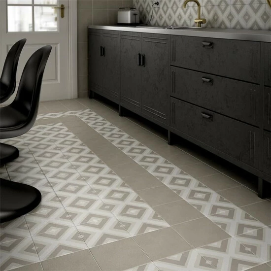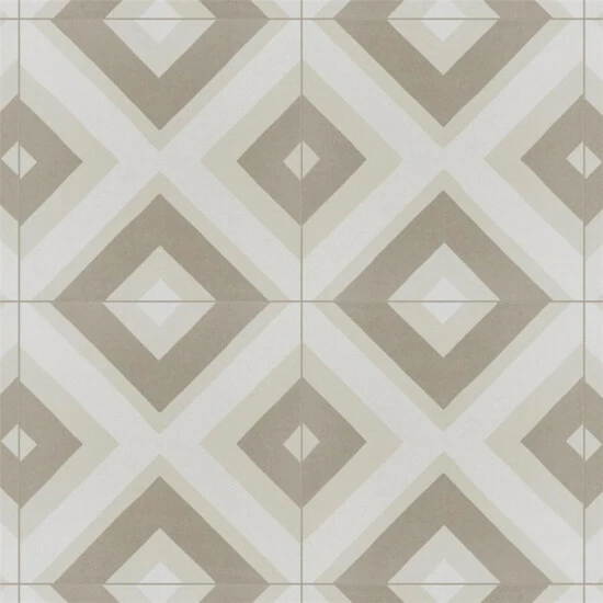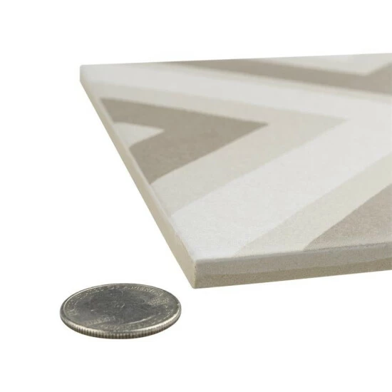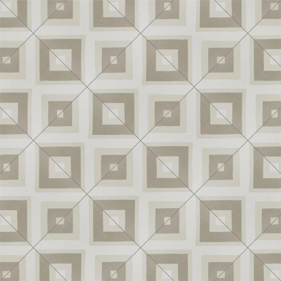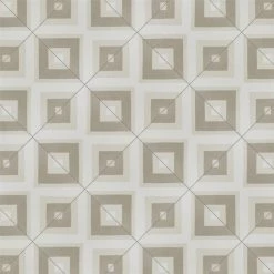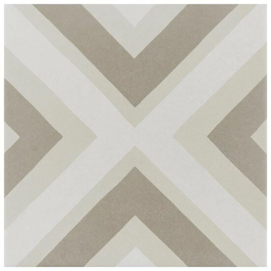 Achieve patterned elegance with the Caprice Pastel Square Encaustic 7-7/8 in. x 7-7/8 in. Porcelain Floor and Wall Tile. This tile features geometric triangles in shades of taupe and beige. When placed together, the tile creates alternating colored square designs. Great for bringing an encaustic look to the home, this slightly textured tile has a matte glazed finish. Durable and frost resistant, this tile is great for any residential location, including entryways, kitchens, showers and patios. It also has a slip-resistant surface, making it safe for wet locations.