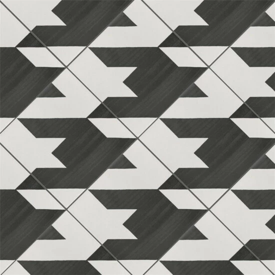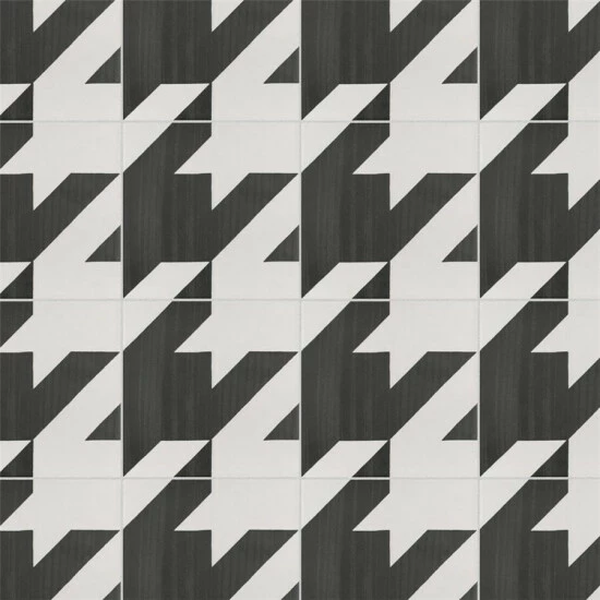 Achieve patterned elegance with the Caprice Tweed Black and White Encaustic 7-7/8 in. x 7-7/8 in. Porcelain Floor and Wall Tile. The contrasting dark charcoal and eggshell white shades create a classic houndstooth pattern when arranged on the floor or wall. Great for bringing an encaustic look to the home, this slightly textured tile has a matte glazed finish. Durable and frost resistant, this tile is great for any residential location, including entryways, kitchens, showers and patios. It also has a slip-resistant surface, making it safe for wet locations.