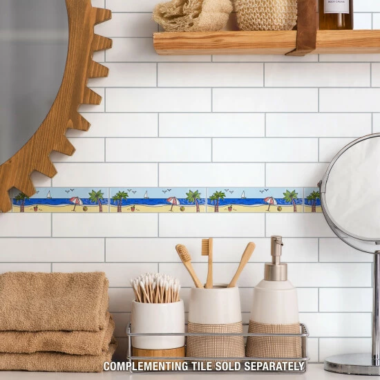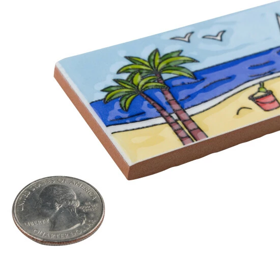 Our Captain Beachy Ceramic Wall Trim Tile is the perfect coastal inspired accent for any space. Crafted in Spain, this tile features a beach themed design with an embossed, glossy finish. Intended for indoor wall use, this tile is an ideal choice for backsplashes, bathrooms, showers, and kitchens. Tile is the better choice for your space. This tile is made from natural ingredients, making it a healthy choice as it is free from allergens, VOCs, formaldehyde, and PVC.