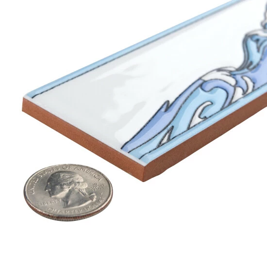 Our Captain Kanagawa Wave Glacier Blue Ceramic Wall Trim Tile is the perfect coastal inspired accent for any space. Crafted in Spain, this tile features a wave design with an embossed, glossy finish. Intended for indoor wall use, this tile is an ideal choice for backsplashes, bathrooms, showers, and kitchens. Tile is the better choice for your space. This tile is made from natural ingredients, making it a healthy choice as it is free from allergens, VOCs, formaldehyde, and PVC.