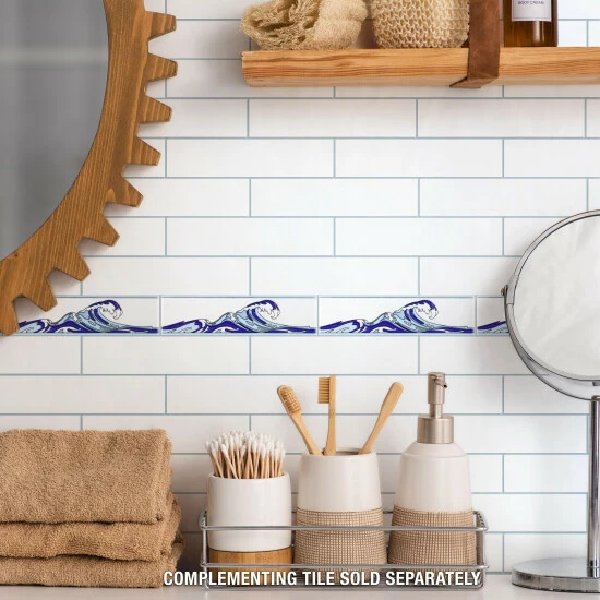 Our Captain Kanagawa Wave Pacific Blue Ceramic Wall Trim Tile is the perfect coastal inspired accent for any space. Crafted in Spain, this tile features a wave design with an embossed, glossy finish. Intended for indoor wall use, this tile is an ideal choice for backsplashes, bathrooms, showers, and kitchens. Tile is the better choice for your space. This tile is made from natural ingredients, making it a healthy choice as it is free from allergens, VOCs, formaldehyde, and PVC.