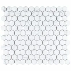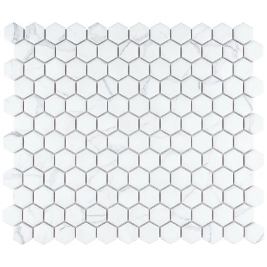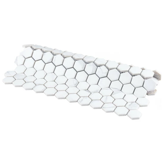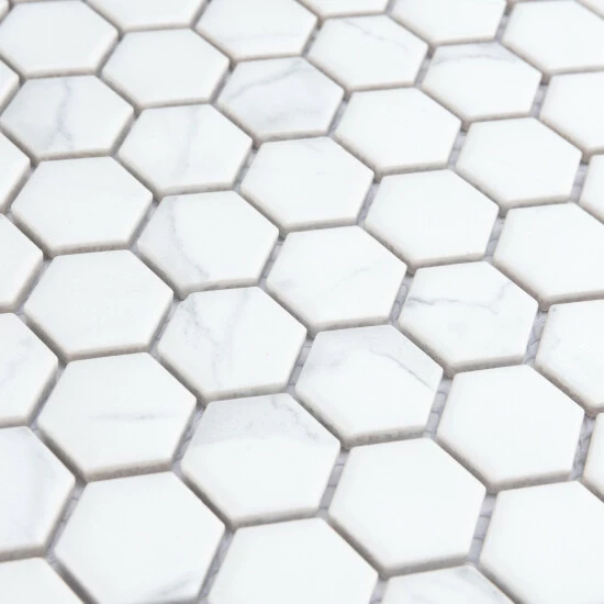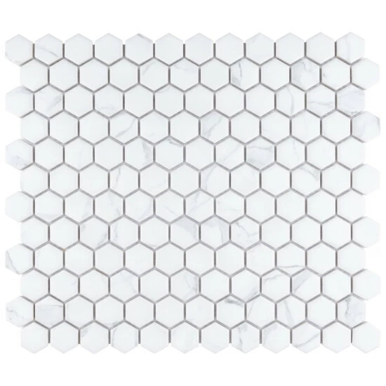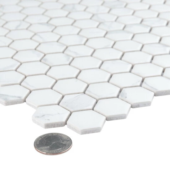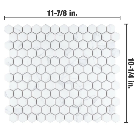 Capturing the apperance of a marble look, our Carrione 1 in. Hex Matte Carrara Porcelain Floor and Wall Tile features a smooth, matte finish, making it a great choice for your space. With its impervious, frost-resistant features, this white hexagon mosaic is an ideal selection for both indoor and outdoor residential installations, including bathrooms, backsplashes, showers, hallways and fireplace facades. This tile is a perfect choice on its own or paired with other products in the Carrione 1 in. Hex Collection. Tile is the better choice for your space. This tile is made from natural ingredients, making it a healthy choice as it is free from allergens, VOCs, formaldehyde, and PVC.