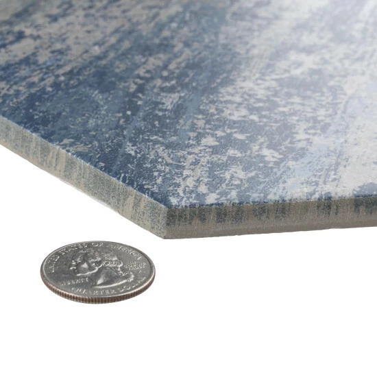 Reminiscent of reclaimed wood, our Cassis Hex Blue 8-5/8″ x 9-7/8″ Porcelain Floor and Wall Tile has an antiquated appearance that offers character and unmistakable style to any space. This hexagon tile features stunningly realistic woodgrains and striations in faded blue, grey, and soft beige tones reminiscent of worn paint. To add further contrast and depth, the tile has subtle bumps, grooves and signs of distress that echo the texture and look of real wood. Available in thirty print variations, that are randomly scattered throughout each case, this porcelain tile offers a one-of-a-kind look. Its impervious, frost-resistant and durable features make this an ideal choice for indoor and outdoor residential installations including kitchens, bathrooms, backsplashes, showers, hallways, entryways, patios, and fireplace facades. Tile is the better choice for your space. This tile is made from natural ingredients, making it a healthy choice as it is free from allergens, VOCs, formaldehyde, and PVC.