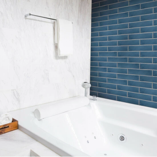 Offering a beautifully unique update to the timeless subway tile, our Castillo Denim Ceramic Wall Tile has the allure of classic style with the essence of modern-day decoration. With slight undulation and a smooth glossy finish, this subway tile offers a handmade appearance through subtle imperfections that make it look like each tile was handcrafted. Its denim blue watercolor inspired tone is unique yet simple enough to integrate into any design, ranging from traditional style renovations to modern home projects. Intended for interior wall use, it is an ideal choice for kitchen backsplashes, bathroom showers and fireplace facades. It is great as a cohesive look or paired with other products in the Castillo Collection. Tile is the better choice for your space. This tile is made from natural ingredients, making it a healthy choice as it is free from allergens, VOCs, formaldehyde, and PVC.