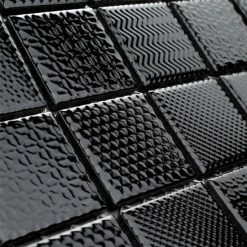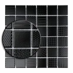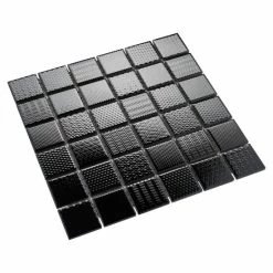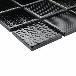 The Celadon Graphite 11-3/4 in. x 11-3/4 in. Porcelain Mosaic Tile features a truly black color tone for an elegant industrial appeal. This tile includes individual square pieces that each have various geometric and chevron patterns to create one unique mosaic sheet that is available in five print variations randomly scattered throughout each case. An illusion of additional depth and dimension is created by a smooth and slightly raised glossy surface, which provides a stunning design. Its impervious and frost-resistant features make this an ideal tile for residential floor and wall installations with light foot traffic. Tile is the better choice for your space. This tile is made from natural ingredients, making it a healthy choice as it is free from allergens, VOCs, formaldehyde and PVC.