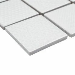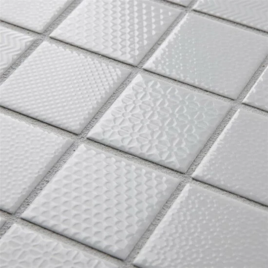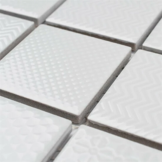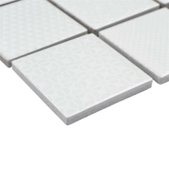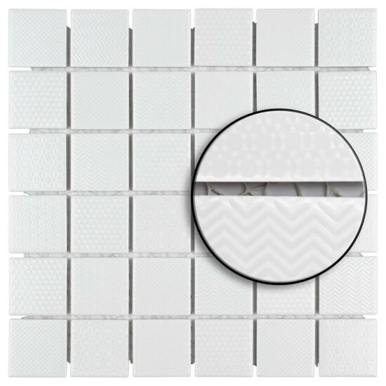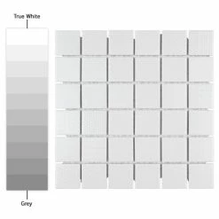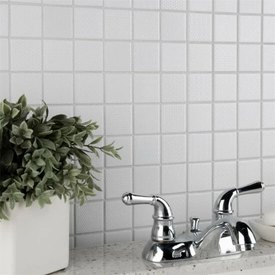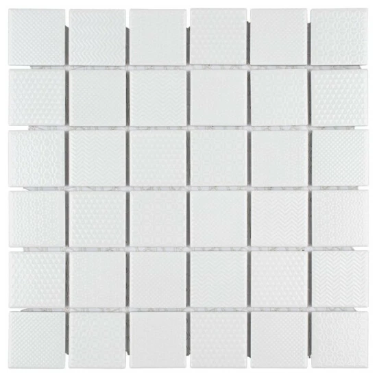 The Celadon White 11-5/8 in. x 11-5/8 in. Porcelain Mosaic Tile features a contemporary look and adds a touch of elegance to any space. This snow white tile features square pieces with various patterns and a high-sheen finish on its surface, offering a sleek look that adds extra character to this unique tile. Its impervious and frost resistant features make this an indoor tile for both indoor and outdoor installations, including backsplashes,, bathrooms, and kitchens.This tile is available in five print variations randomly scattered throughout each case. Tile is the better choice for your space. This tile is made from natural ingredients, making it a healthy choice as it is free from allergens, VOCs, formaldehyde and PVC.