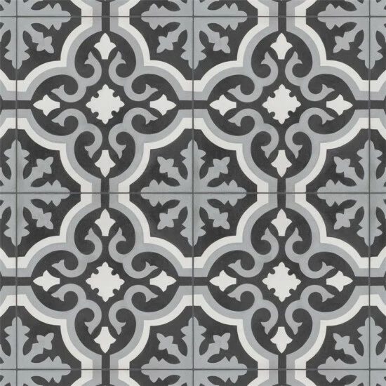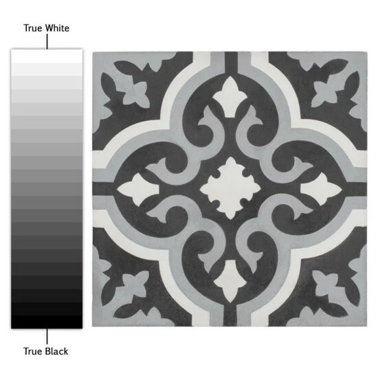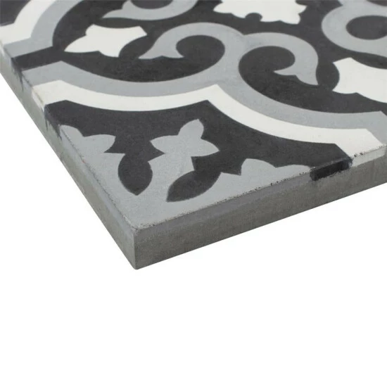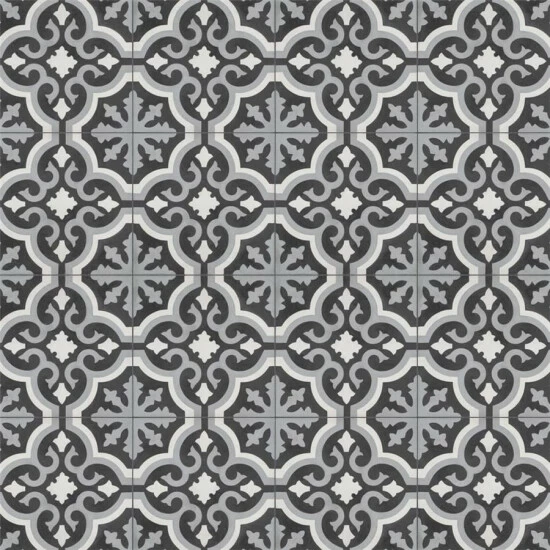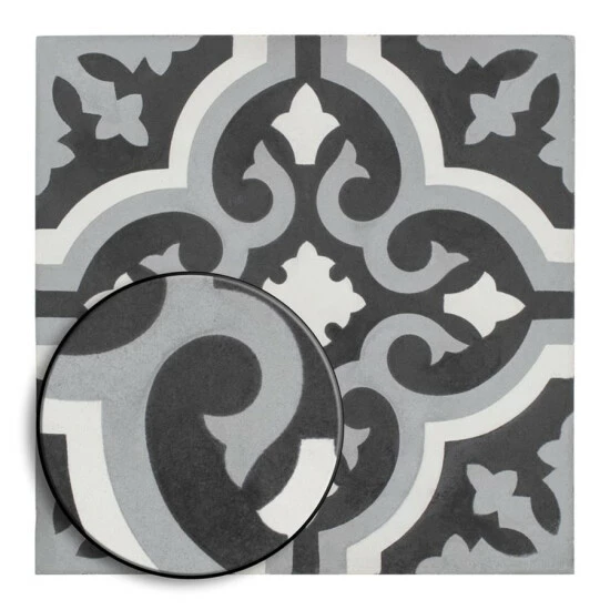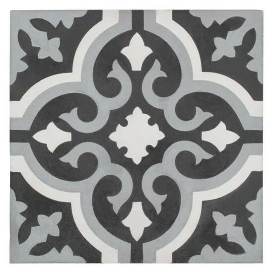Capture the beauty of authentic, traditional cement tiles with the Cemento Braga Luna Encaustic 7-7/8 in. x 7-7/8 in. Cement Handmade Floor and Wall Tile. These tiles are constructed of cement, offering a partial through-body coloring. Each tile is hand-crafted by taking a 1 cement base, pouring color into a mold, pressing the color with a hydraulic press and then allowing it to cure for a number of days. The result is a completely one of a kind look that may produce natural variations or chips, which are characteristics of true cement tile. This brand new design is inspired by our encaustic look series, Braga, and features snow white, ash grey, and charcoal hues. These durable tiles can be used in a variety of interior settings. Be sure to pair these with other tiles in the coordinating Cemento series for a unique look. It is necessary that you seal your cement tiles. Please follow the link for the cement tile sealing guide found to the right of this text for information. Tile is the better choice for your space. This tile is made from natural ingredients, making it a healthy choice as it is free from allergens, VOCs, formaldehyde and PVC.