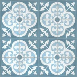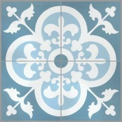 Capture the beauty of authentic, traditional cement tiles with the Cemento Empress Ocean Encaustic 8 in. x 8 in. Cement Handmade Floor and Wall Tile. These tiles are constructed of cement, offering a partial through-body coloring. Each tile is hand-crafted by taking a 1 in. cement base, pouring color into a mold, pressing the color with a hydraulic press and then allowing it to cure for a number of days. The result is a completely one of a kind look that may produce natural variations or chips, which are characteristics of true cement tile. The monochromatic tile offers an old-world floral pattern in shades of slate blue and muted sky blue accented with white accents. These durable tiles can be used in a variety of interior settings. Be sure to pair these with other tiles in the coordinating Cemento series for a unique look. It is necessary that you seal your cement tiles. Please follow the link for the cement tile sealing guide found to the right of this text for information.