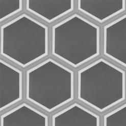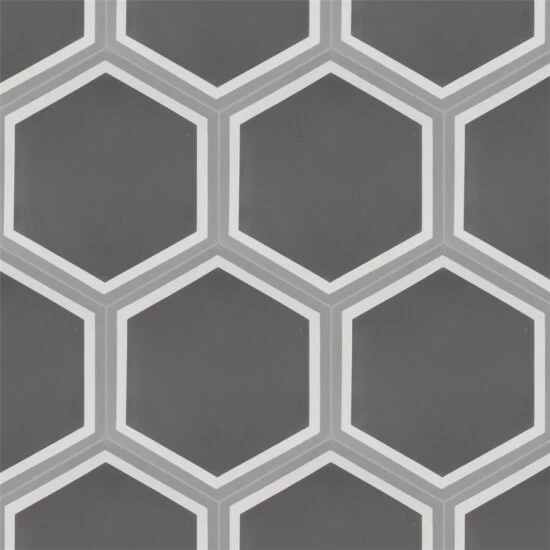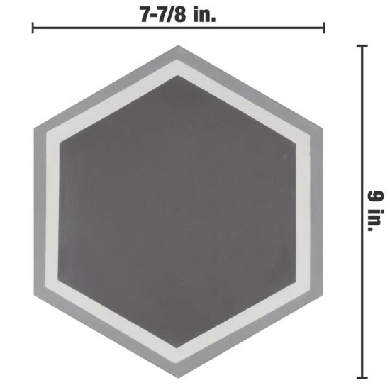 Capture the beauty of authentic, traditional cement tiles with the Cemento Hex Holland Strait Encaustic 8 in. x 9 in. Cement Handmade Floor and Wall Tile. These hexagon tiles are constructed of cement, offering a partial through-body coloring. Each tile is hand-crafted by taking a 1 in. cement base, pouring color into a mold, pressing the color with a hydraulic press and then allowing it to cure for several days. The result is a completely one of a kind look that may produce natural variations or chips, which are characteristics of true cement tile. The monochromatic tile offers three different shades of gray, ranging from pale light gray to a dark charcoal gray in a simplistic framing pattern. These durable tiles can be used in a variety of interior settings. Be sure to pair these with other tiles in the coordinating Cemento series for a unique look. It is necessary that you seal your cement tiles. Please follow the link for the cement tile sealing guide found to the right of this text for information.