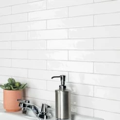 As an updated version of the standard subway tile, our Chester Bianco 2 in. x 10 in. Ceramic Wall Tile has the allure of classic style, but with a refreshingly modern twist. With slight undulation and a smooth glossy finish, this subway tile offers a handmade appearance through subtle imperfections that make it look like each tile was handcrafted. Its white watercolor inspired tone is subtle enough to seamlessly fit alongside various designs including contemporary, traditional, and modern farmhouse styles. It is great as a cohesive look or paired with other products in the Chester Collection. Intended for interior wall use, this tile is an excellent selection for kitchen backsplashes, bathroom showers and accent walls. Tile is the better choice for your space. This tile is made from natural ingredients, making it a healthy choice as it is free from allergens, VOCs, formaldehyde and PVC.