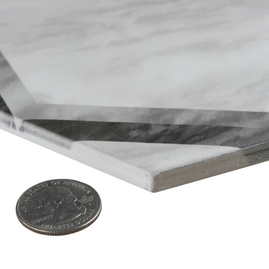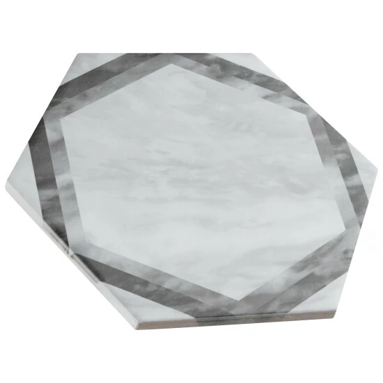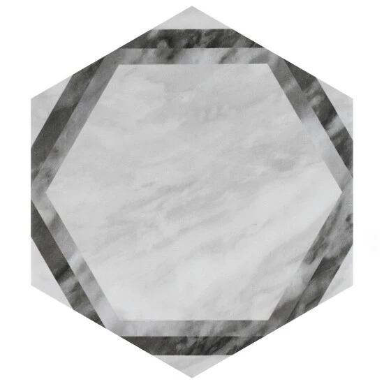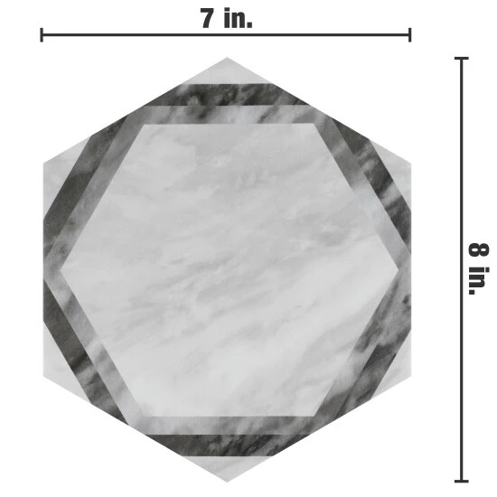 Emulating the timeless beauty of marble stone in an easy to maintain porcelain material, our Classico Bardiglio Hex Dimension Light 7″ x 8″ Porcelain Floor and Wall Tile, brings functional sophistication into any space. This matte hexagon tile features alternating grey and black framing patterns with grey veining and striations set on a light grey base glaze. This innovative and sophisticated display of geometric design is visually appealing and versatile and adapts to any stylistic context. Its impervious and frost-resistant features make it an ideal choice for indoor and outdoor installations including kitchens, bathrooms, backsplashes, showers, entryways, and patios. This tile is a perfect choice on its own or coordinated with other products in the Classico Bardiglio series. Tile is the better choice for your space. This tile is made from natural ingredients, making it a healthy choice as it is free from allergens, VOCs, formaldehyde, and PVC.br>