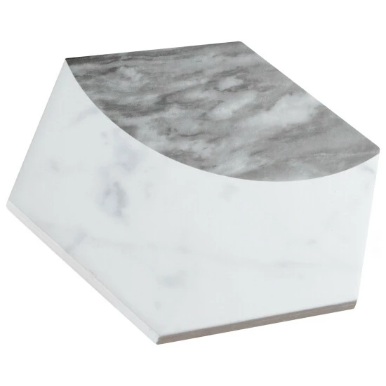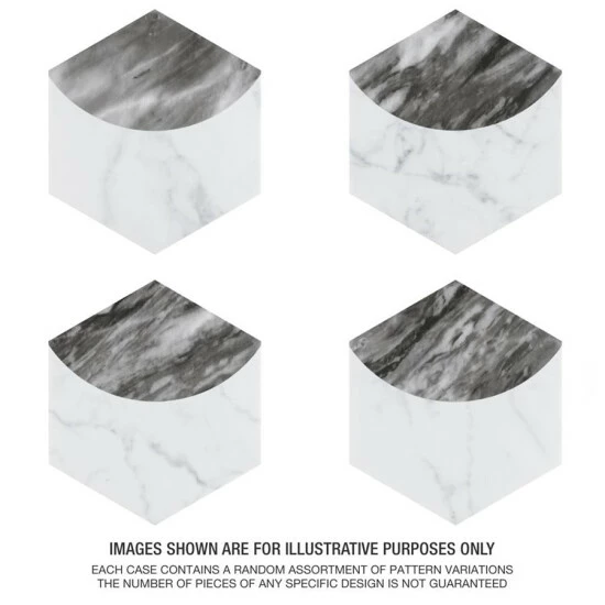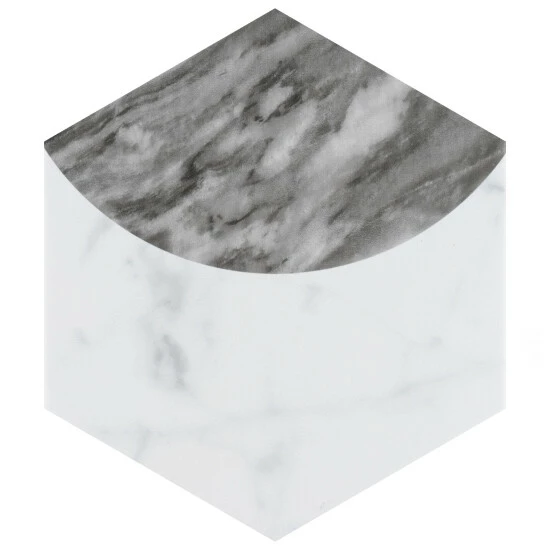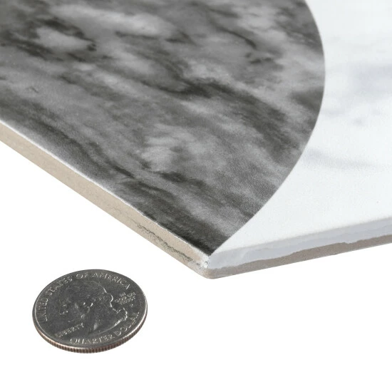 Emulating the timeless beauty of marble stone in an easy to maintain porcelain material, our Classico Bardiglio Hex Moon Dark 7″ x 8″ Porcelain Floor and Wall Tile, brings functional sophistication into any space. This matte hexagon tile features a dark grey crescent pattern with grey veining and striations set on a light grey base glaze. This innovative and sophisticated display of geometric design is visually appealing and versatile and adapts to any stylistic context. Its impervious and frost-resistant features make it an ideal choice for indoor and outdoor installations including kitchens, bathrooms, backsplashes, showers, entryways, and patios. This tile is a perfect choice on its own or coordinated with other products in the Classico Bardiglio series. Tile is the better choice for your space. This tile is made from natural ingredients, making it a healthy choice as it is free from allergens, VOCs, formaldehyde, and PVC.