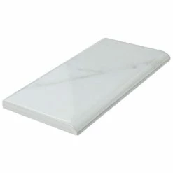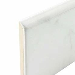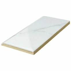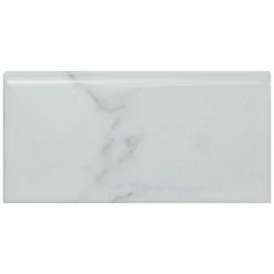Emulating the timeless beauty of Carrara marble, the Classico Carrara Glossy Bullnose 3″ x 6″ Ceramic Wall Trim Tile captures stunning artistry dating back to Ancient Rome. Set on a glossy white glaze, this marbleized ceramic tile offers an everlasting look to accent your wall installation. Light grey veining striations sporadically flow throughout this trim piece, adding authenticity to your installation. With a traditional subway format and a 6″ rounded finished edge, this tile is perfect for finishing your wall installation. There is variation in the veining patterns found throughout each tile. Pair this tile with other Classico Carrara products to complete your own elegant installation. Tile is the better choice for your space. This tile is made from natural ingredients, making it a healthy choice as it is free from allergens, VOCs, formaldehyde and PVC.