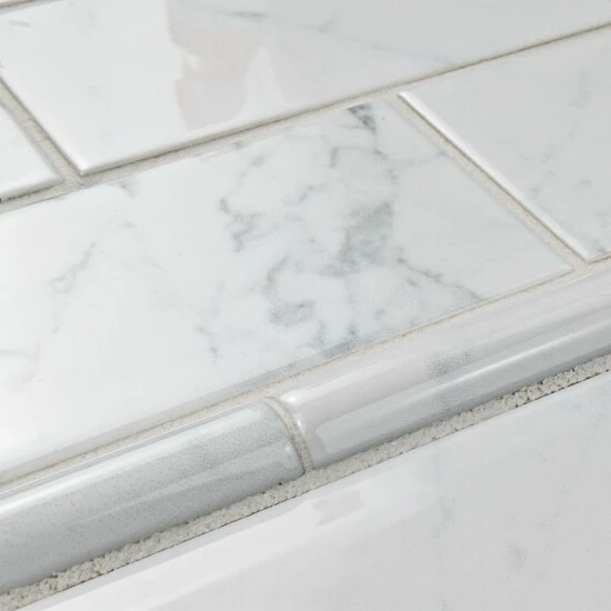 Emulating the timeless beauty of Carrara marble, the Classico Carrara Glossy Torello 3/4″ x 6″ Ceramic Wall Trim Tile captures stunning artistry dating back to Ancient Rome. Set on a glossy white glaze, this marbleized ceramic tile offers an everlasting look to accent your wall installation. Light grey veining striations sporadically flow throughout this trim piece, adding authenticity to your installation. The rounded surface of this trim piece makes it great for setting between two different wall tiles. The unglazed edges make it so that it is not recommend to be used as a finishing edge for your installation. There is variation in the veining patterns found throughout each tile. Pair this tile with other Classico Carrara products to complete your own elegant installation. Tile is the better choice for your space. This tile is made from natural ingredients, making it a healthy choice as it is free from allergens, VOCs, formaldehyde and PVC.