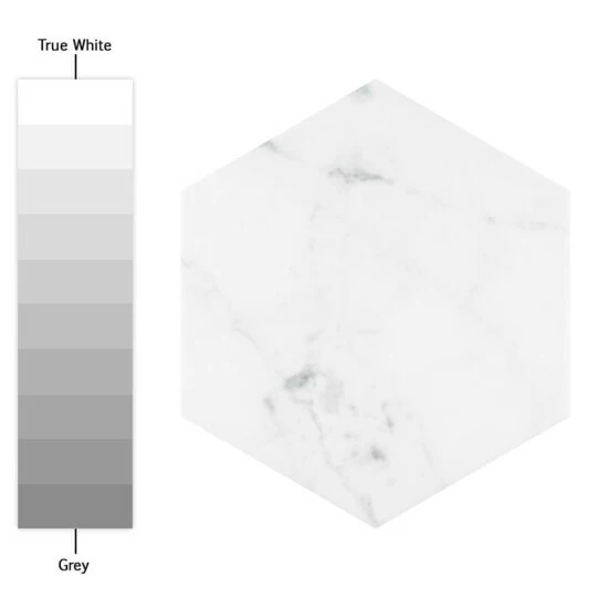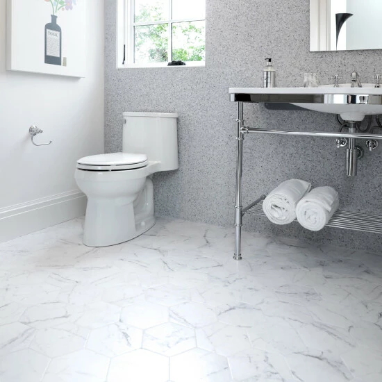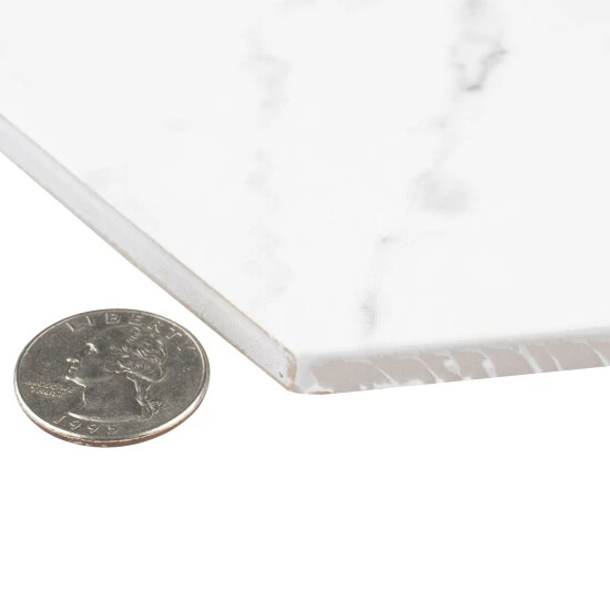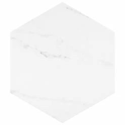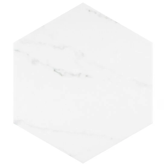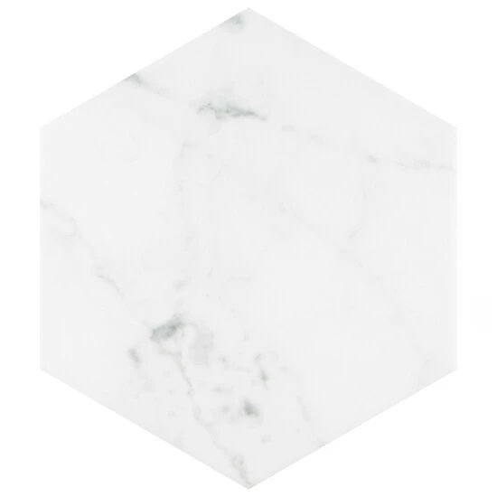 Enjoy the look of marble at an affordable price with the Classico Carrara Hexagon 7 in. x 8 in. Porcelain Floor and Wall Tile. Designed to have the look of Carrara marble, this porcelain tile has a classic look and a smooth, matte finish. The hexagonal design makes it ideal for both historical renovations and new construction. Durable and slip resistant, it’s an excellent choice for most residential floors, including kitchens, showers and entryways. Use this tile alone or mix and match it with the coordinating patterned options for a unique result.