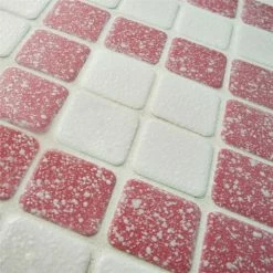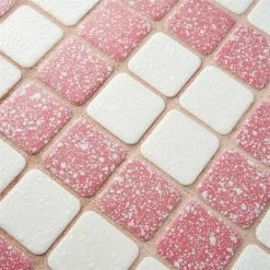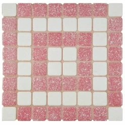Our Crystalline Market Square Flamingo 11-3/4″ x 11-3/4″ Porcelain Floor and Wall Mosaic Tile is an innovative twist on the classic mosaic. Featuring a mottled glazed surface, this product is comprised of square shaped chips with a pink and white color palette. This slightly textured mosaic creates a classic and versatile look with slightly rounded squares arranged on an interlocking mesh to create a unique and seamless installation. This geometric porcelain mosaic is unique yet simplistic enough to integrate into any design, ranging from traditional style renovations to modern home projects. Its impervious, frost-resistant and ADA compliant features make this an ideal tile for both commercial and residential indoor and outdoor use, including backsplashes, bathrooms, showers, kitchens, patios, and entryways. Tile is the better choice for your space. This tile is made from natural ingredients, making it a healthy choice as it is free from allergens, VOCs, formaldehyde and PVC.