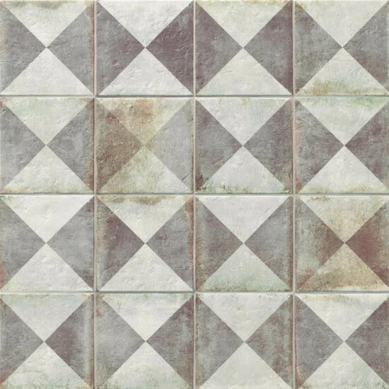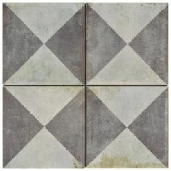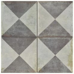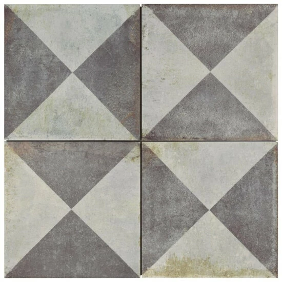 Our D’Anticatto Decor Triangoli 8-3/4 in. x 8-3/4 in. Porcelain Floor and Wall Tile radiates rustic charm. Mimicking a worn cement appearance, this porcelain tile is a subtle statement piece created by geometric motifs in faded charcoal grey set on a textured light beige base glaze. With rust colored accents and realistic imitations of scuffs and spots, this encaustic inspired tile evokes a loved, worn and century-old appearance. Available in twenty-five print variations that are randomly scattered throughout each case, the variation throughout each tile mimics an authentic aged appearance. Its impervious, frost-resistant and durable features make this tile and ideal choice for both indoor and outdoor residential installations including, backsplashes, kitchens, bathrooms, showers, entryways and patios. This tile is a perfect choice on its own or paired with other products in the D’Anticatto Collection. Tile is the better choice for your space. This tile is made from natural ingredients, making it a healthy choice as it is free from allergens, VOCs, formaldehyde and PVC.