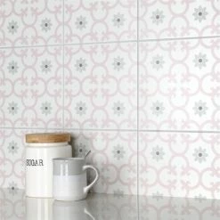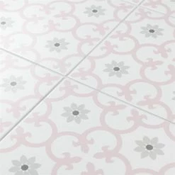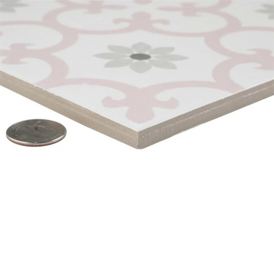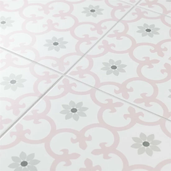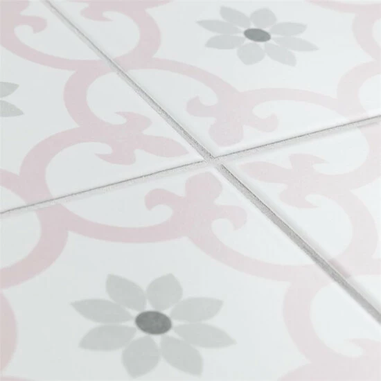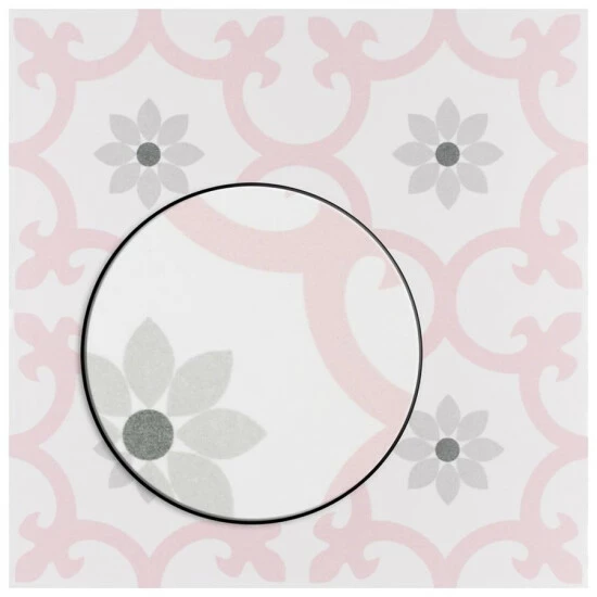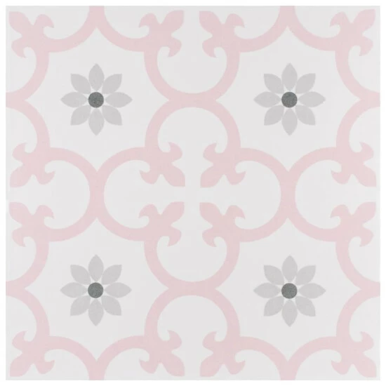 Our Daria Encaustic 9-3/4 in. x 9-3/4 in. Rose Porcelain Floor and Wall TileTile features a snow white color tone accented with light pink and grey floral motifs extending across the tile. This encaustic inspired tile pattern will liven up any space and give it a modern spin. Its geometric design is unique yet simplistic enough to integrate into any design, ranging from traditional style renovations to modern home projects. The matte glazed surface adds extra character to this unique artistic tile. Its impervious, frost resistant and durable features make this an ideal tile for both commercial and residential indoor and outdoor use, including backsplashes, bathrooms, kitchens and patios. This tile is a perfect choice on its own or coordinate with other products in the Daria series. Tile is the better choice for your space. This tile is made from natural ingredients, making it a healthy choice as it is free from allergens, VOCs, formaldehyde and PVC.