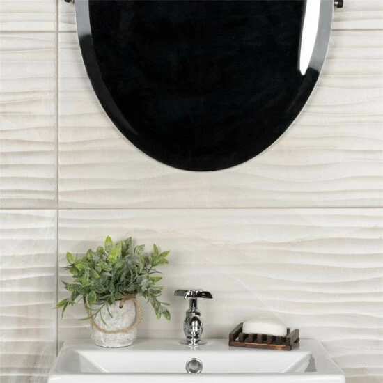 Featuring a simple yet captivating design, our Deco Dubai Pearl 12-1/2″ x 24-1/2″ Porcelain Wall Tile introduces eye-catching beauty that provides character and personality wherever it is installed. With a smooth three-dimensional surface and wavy patterns that run laterally, this enlarged porcelain plank tile creates a dynamic and soothing aesthetic that has the ability to enhance any space. Pale cream and beige tones with subtle striations further infuses this tile with elegance and natural charm. Its impervious and frost-resistant features make this an ideal choice for both indoor and outdoor wall installations including, kitchens backsplashes, shower walls and fireplace facades. Tile is the better choice for your space. This tile is made from natural ingredients, making it a healthy choice as it is free from allergens, VOCs, formaldehyde and PVC.