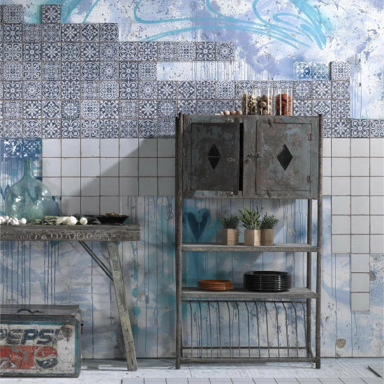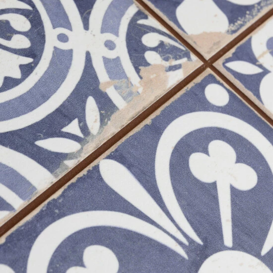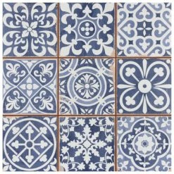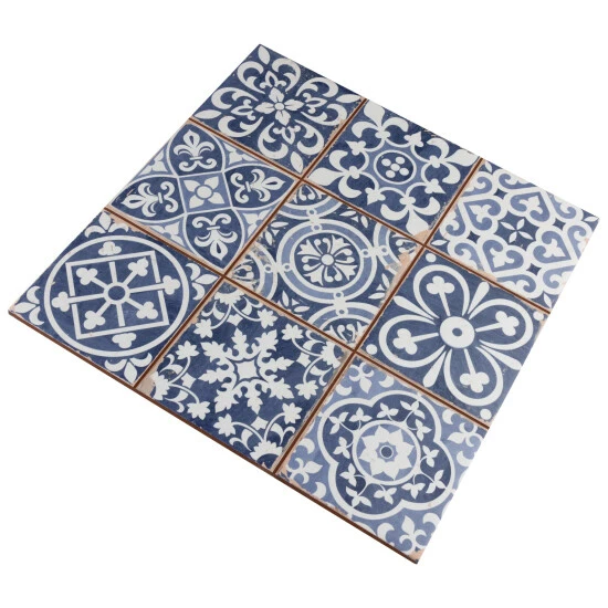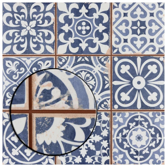 It is easy to picture sun-drenched streets of Spain when looking at our Faenza Azul 13 in. x 13 in. Ceramic Floor and Wall Tile. Save time and labor spent arranging smaller square tiles and instead install these durable ceramic slabs, which have nine squares separated by scored grout lines. This breathtaking blue glaze features a collection of encaustic-inspired designs. Imitations of the scuffs and spots that are the marks of well-loved, worn, century-old tile and the rich red tones peeking through are the perfect contrast to the faded shades of denim blue. These rustic scuffs and spots convince that this tile is truly aged. There are 3 different variations of scuffs and pattern arrangements available that are randomly scattered throughout each case, offering a sporadic patchwork look. Designed by interior architect and furniture designer Francisco Segarra, this tile is a true reflection of vintage industrial design. The scored grout lines can be grouted with the color of your choice to further customize your installation. Bring rustic charm to your interior with this easy-to-maintain look.