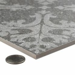 Mimicking the appearance of flattened stones set in concrete, the Farnese Molise Grafito 11-1/2 in. x 11-1/2 in. Porcelain Floor and Wall Tile offers a natural look for virtually any space. With a grey background reminiscent of a stony river bottom, this tile has a smooth but slip-resistant surface. Varying stones are printed into the surface, offering a level surface for walking on. Subtle old-world elegant designs are printed onto the surface of the tile, creating a leafy, ornate look for any space. This large porcelain slab is rectified, or ground down for precise sizing every time. Great for interior and exterior use, this tile can be used in showers, kitchens, and on patios or fireplaces. Tile is the better choice for your space. This tile is made from natural ingredients, making it a healthy choice as it is free from allergens, VOCs, formaldehyde and PVC.