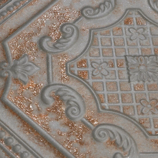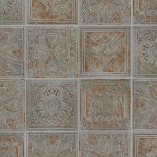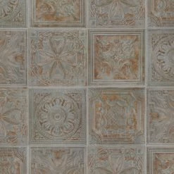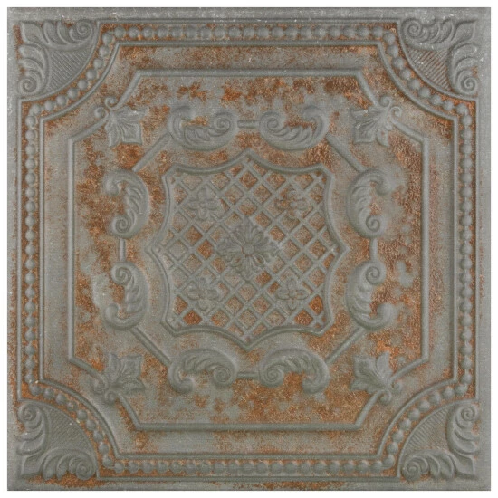 Reminiscent of antique tin ceiling tiles, our Fitz Charcoal Ceramic Wall Tile offers authentic vintage appeal. This decorative square tile features embossed old-world motifs in dark grey and rust color tones with splashes of glossy glazing. With a textured, mixed finish surface, this ceramic tile can blend into virtually any design theme, ranging from contemporary projects to traditional installation. Available in 40 print variations that are randomly scattered throughout each case, the variation throughout each tile mimics an authentic aged appearance. Its glazed feature makes it an ideal choice for indoor wall installations including kitchen backsplashes, bathroom showers, and fireplace facades. Tile is the better choice for your space. This tile is made from natural ingredients, making it a healthy choice as it is free from allergens, VOCs, formaldehyde, and PVC.
