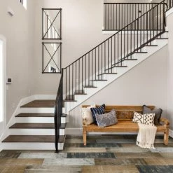 Reminiscent of reclaimed wooden planks, our Gaugin Catan Shadow Porcelain Floor and Wall Tile has an antiquated appearance that offers character and unmistakable style to any space. This large format rectangle tile features stunningly realistic woodgrains and striations in faded brown and beige tones reminiscent of worn paint. To add further contrast and depth, the tile has subtle bumps, grooves and signs of distress that echo the texture and look of real wood. Available in 17 print variations, that are randomly scattered throughout each case, this porcelain tile offers a one-of-a-kind look. Its impervious and frost-resistant features make this an ideal choice for indoor and outdoor residential installations including kitchens, bathrooms, backsplashes, showers, hallways, entryways, patios, and fireplace facades. Tile is the better choice for your space. This tile is made from natural ingredients, making it a healthy choice as it is free from allergens, VOCs, formaldehyde, and PVC.