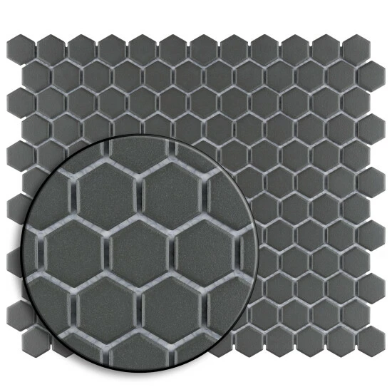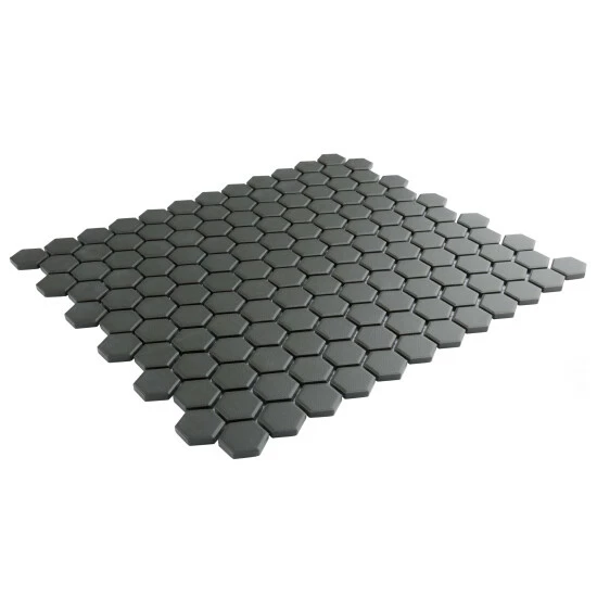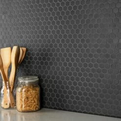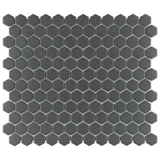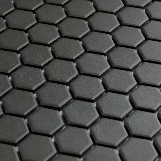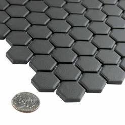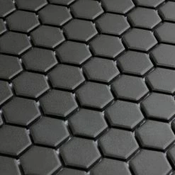 Transform your space into a tribute to retro design with our Gotham 1″ Hex Black 10-1/4″ x 11-3/4″ Unglazed Porcelain Mosaic Tile. As a modern deviation from the classic mosaic, this fresh option is a throwback to traditional retro design with a contemporary feel. Unglazed charcoal black hexagons are arranged on an interlocking mesh to create a seamless installation. This minimalistic geometric porcelain mosaic is unique yet simplistic enough to integrate into any design, ranging from traditional style renovations to modern home projects. Its impervious, frost-proof and ADA compliant features make this an ideal tile for both commercial and residential indoor and outdoor use, including backsplashes, bathrooms, showers, kitchens and entryways. Tile is the better choice for your space. This tile is made from natural ingredients, making it a healthy choice as it is free from allergens, VOCs, formaldehyde and PVC. Note: Due to the unglazed nature, we recommend sealing this tile.